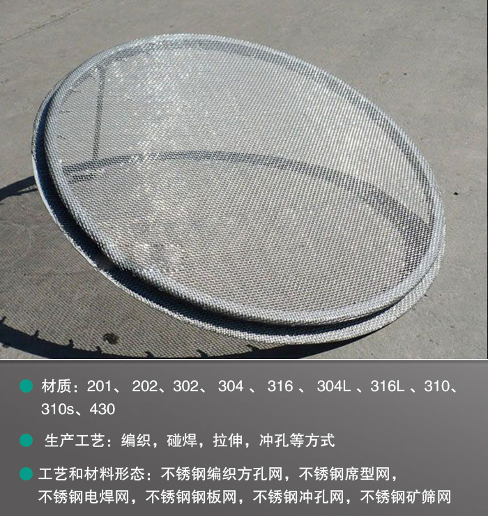 不銹鋼篩網常用的材質有:201、 202、302、 304 、 316 、 304L 、316L 、310、310s、430等。